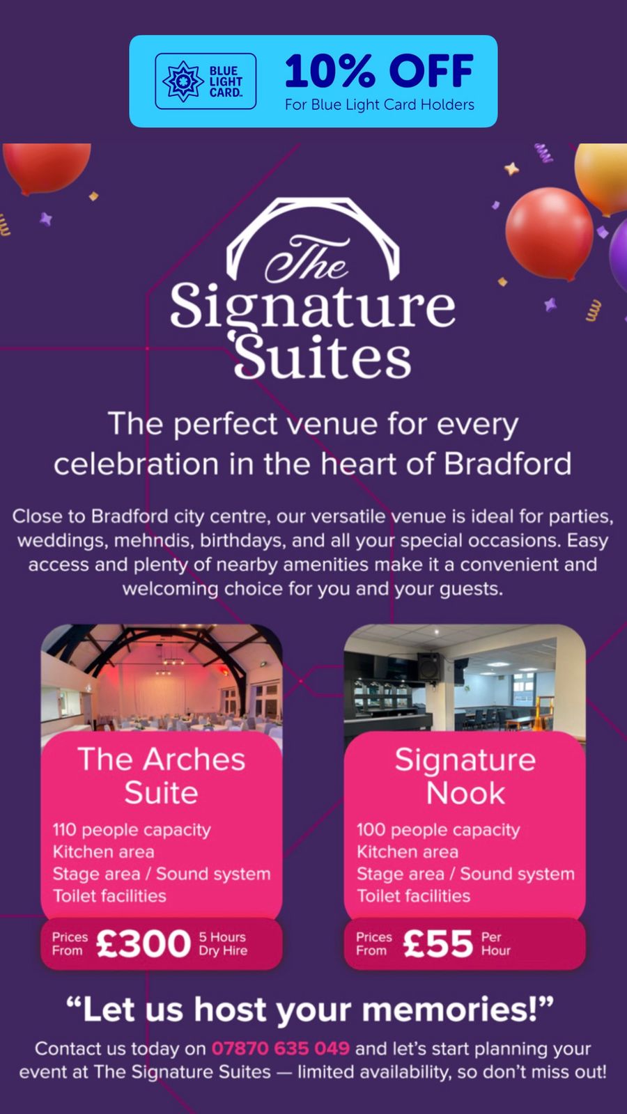 "We had our wedding reception at Signature Suites and it was perfect! The staff were so helpful and the venue looked stunning. Highly recommend!"